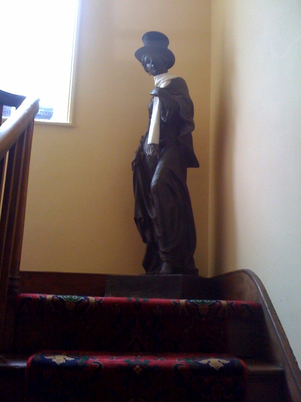 Don’t look into its eyes!!! AAAAAAAAAAAAAAAAARRRRRGGGGHHHHH! And then, then I had an epiphany. This statue, while horrifying in most aspects, has also been made to wear a top hat and scarf which I feel demeans it a bit. Then I calmed myself by thinking of all those scary Weeping Angel statues who are made to hold large amounts of hats or constantly get covered in bird shit in Trafalgar Square. Sure they’re all scary when they’re in space but as soon as some hangs an arrow sign over their heads or gives them a jester’s hat they are probably confined to standing there feeling like a twat. Its this sort of thinking that will both allow me to deal with statue of terror and also will get me killed if I blink.